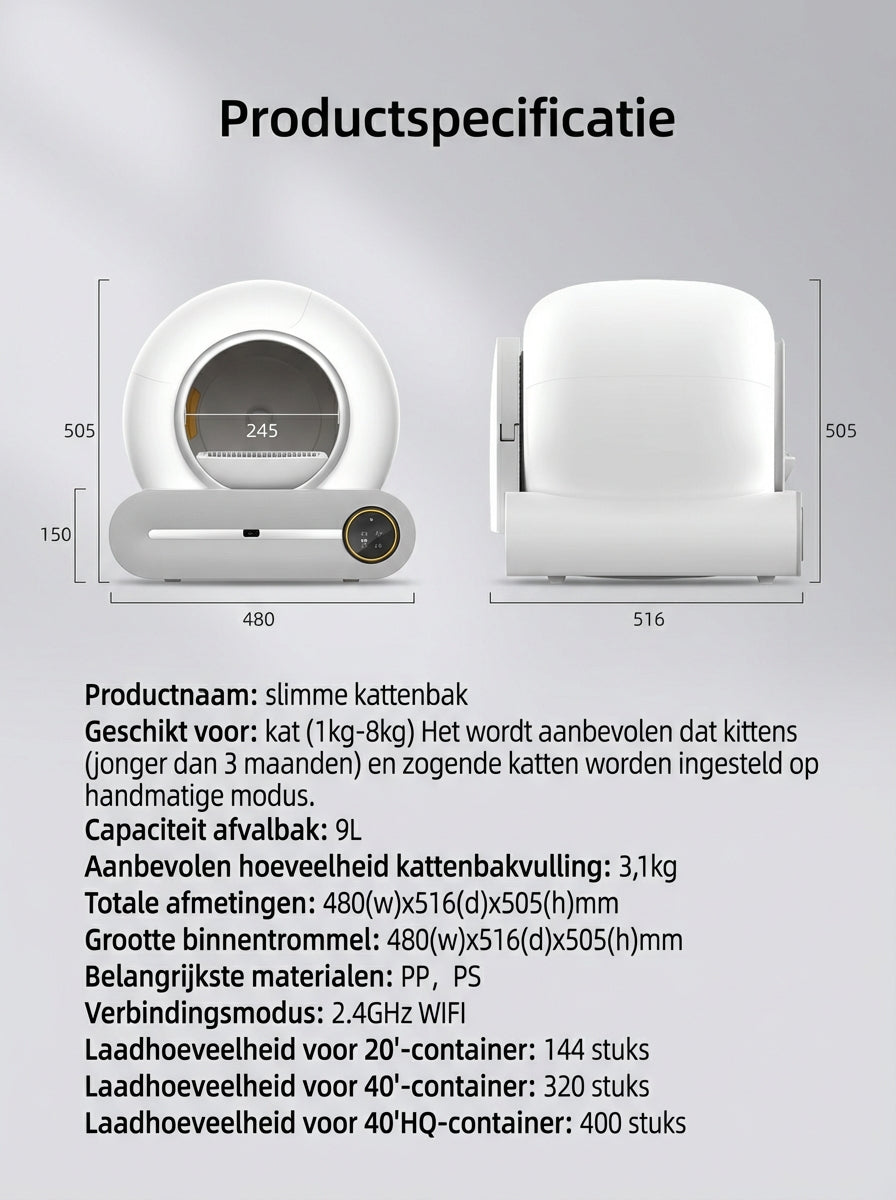 Deze slimme zelfreinigende kattenbak doet het werk volledig voor jou – automatisch, veilig en hygiënisch. Ideaal voor drukke baasjes en gezinnen met meerdere katten.