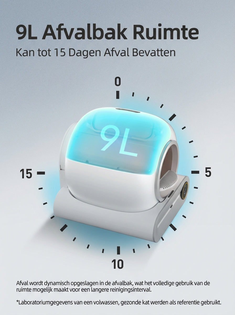 Na elk toiletbezoek reinigt de kattenbak zichzelf automatisch. Geen schep, geen vieze handen, geen gedoe.