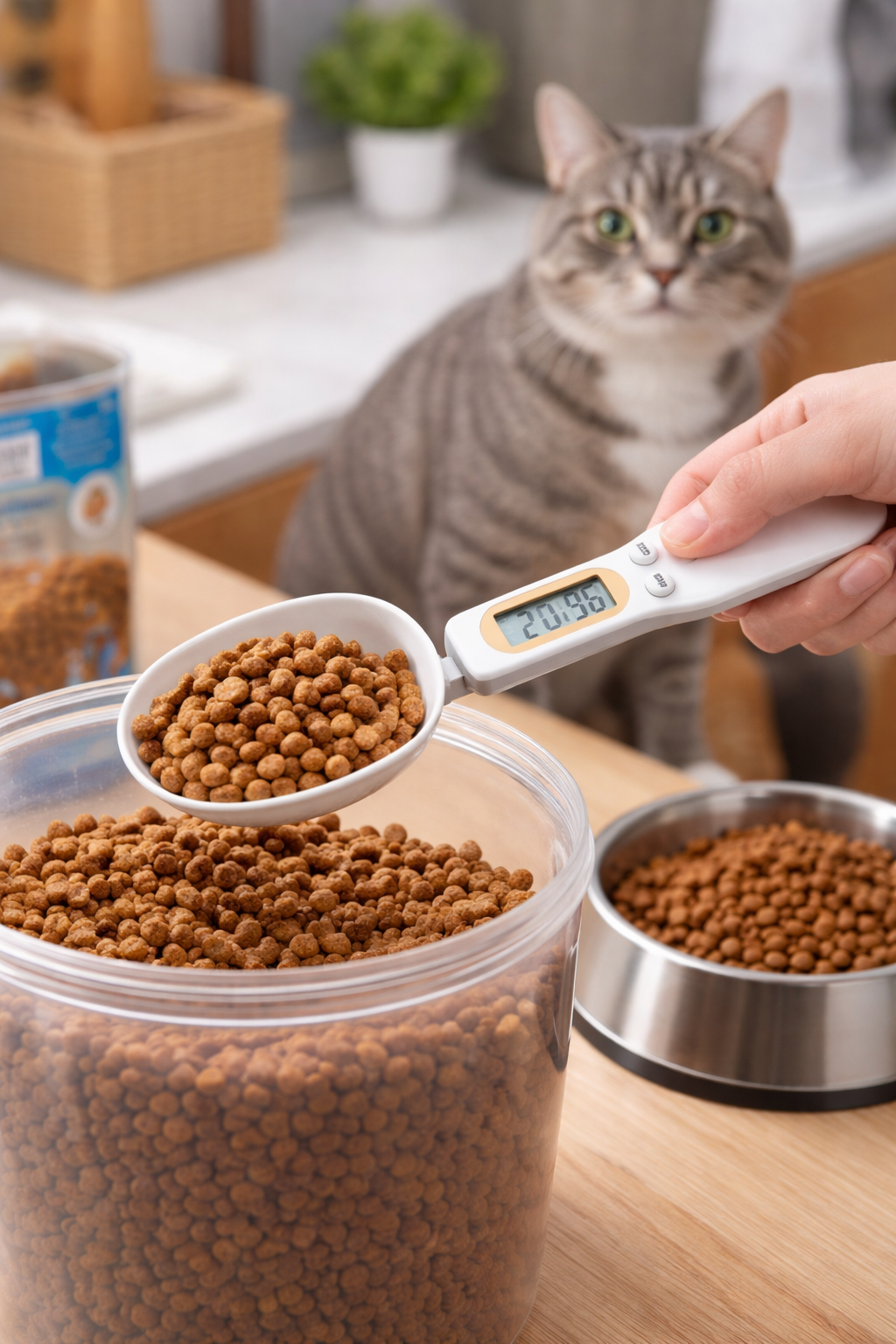 Deze digitale portielepel helpt je om ingrediënten en porties exact af te meten, of je hem nu gebruikt voor kattenvoer, snacks, supplementen of andere droge ingrediënten in huis.